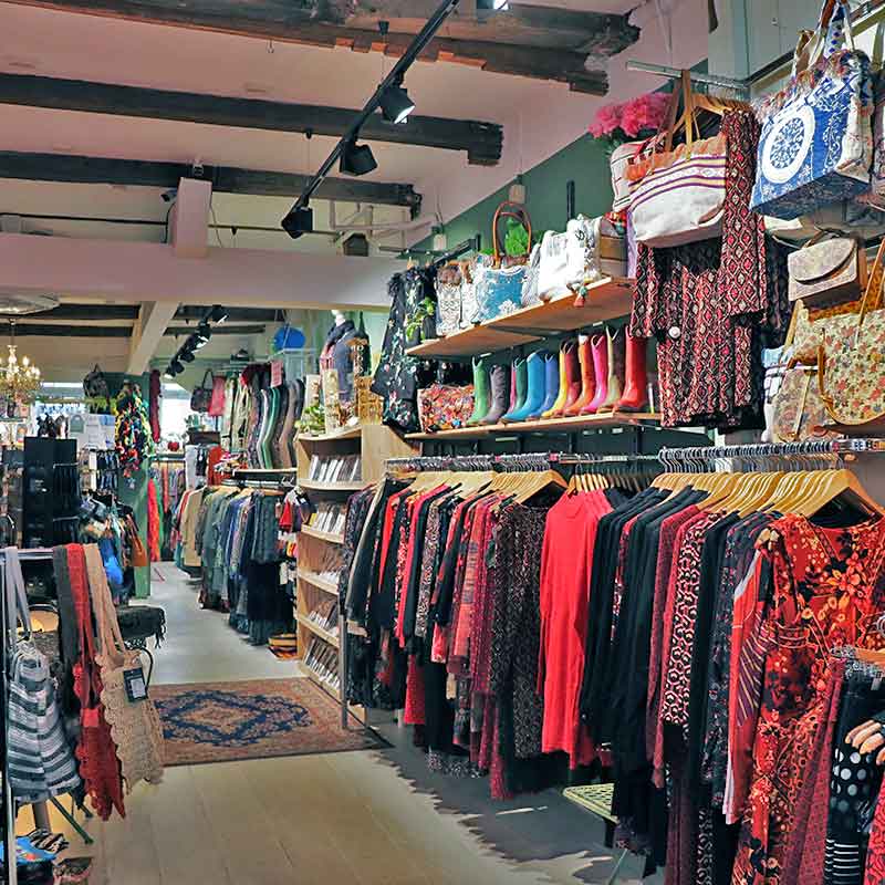 There’s always a fresh pot of tea on the stove, and coffee is just as easily arranged. From scarves and wallets to home accessories and a treasure trove of jewelry — there’s so much to explore, you’ll want to stay a while!